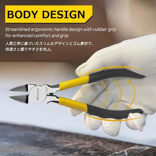 【軽い力でスパッと切れる】 高硬度なCR-Vクロムバナジウム鋼を使用し、さらに精密研磨加工を施すことで、驚くほどスムーズな切断を実現。電線(銅線・軟鉄線)やプラモデルのゲート処理、小型家電の補修、電子工作など、幅広い用途に対応。刃先が鋭く、切り口も美しく仕上がります。