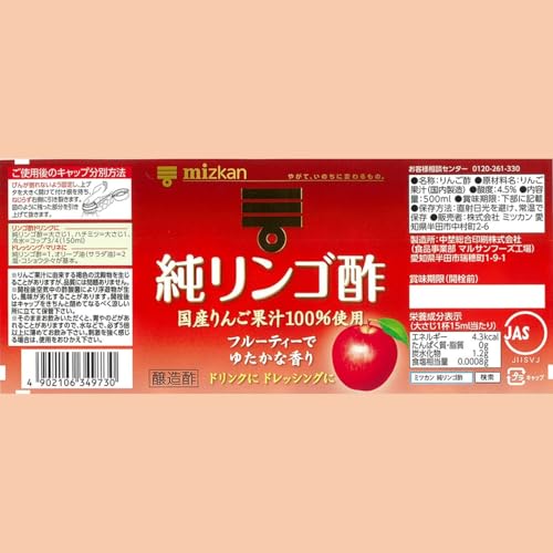 原材料:りんご果汁(国内製造) 栄養成分:大さじ1杯15ml当たり エネルギー:4.7kcal、たんぱく質:0g、脂質:0g、炭水化物:1.4g、食塩相当量:0.001g アレルゲン:りんご パッケージ重量: 1.39 kg ブラント名: ミツカン