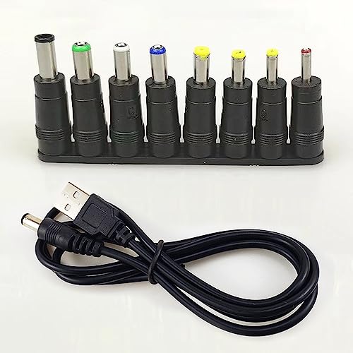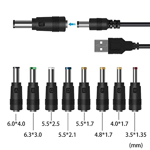 TJK USBケーブル 8 in 1 DC 5V1A 電源ケーブル USB-丸口 変換プラグ付き DC充電コード 5.5x2.5/5.5x2.1mm 扇風機 ナイトライト などに適用 サイズ 3.5*1.35mm 4.0*1.7mm 4.8*1.7mm 5.5*1.7mm 5.5*2.1mm 5.5*2.5mm 6.3*3.0mm 6.4*4.4mm コネクタアダプタ (1本+8変換プラグ)