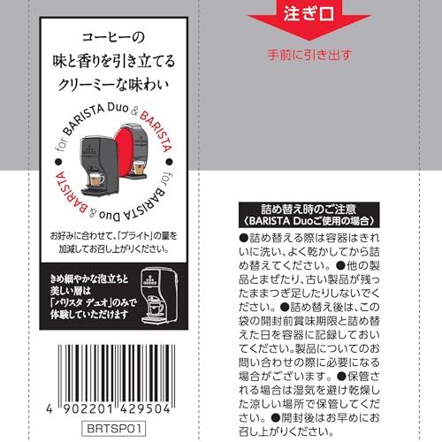 原材料:コーンシロップ、植物油脂、カゼイン、脱脂粉乳/pH調整剤、乳化剤、酸化ケイ素、香料 商品サイズ(高さx奥行x幅):20cm×6cm×11cm ネスカフェ ゴールドブレンド バリスタ デュオ」のクリーマー用タンクに入れて使用できるブライト。 パッケージ重量: 0.48 kg