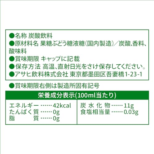 原材料:砂糖類(果糖ぶどう糖液糖、砂糖)/炭酸、香料、酸味料 内容量:500ml×24本 商品サイズ(高さx奥行x幅):23.3cm×26.6cm×39.6cm