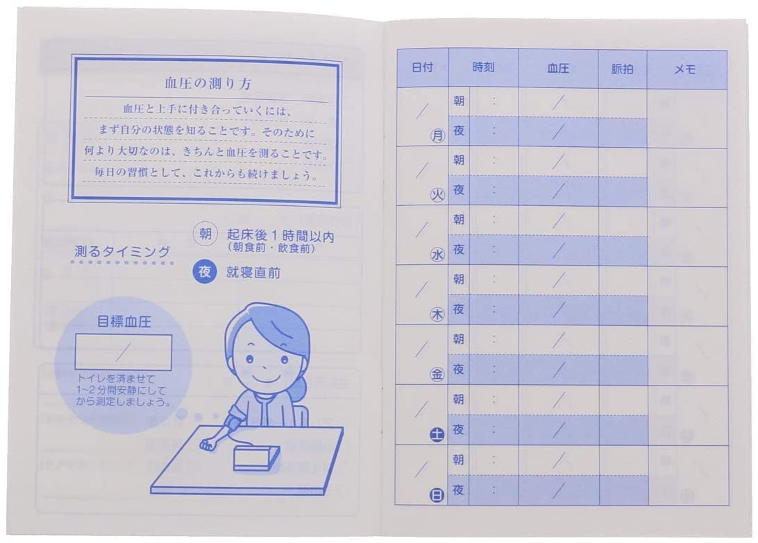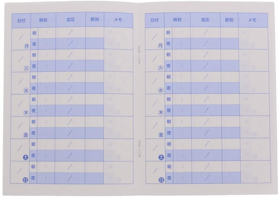 こちらの商品は5冊で1セットになっています。 数値のみを記入するとてもシンプルな「血圧手帳」です。 サイズ:横105mm×縦148mm(A6サイズ) 1冊あたり1週間1ページ、30週分の血圧を記録することが出来ます。 1日2回の血圧が記録できます。 構成:全32頁