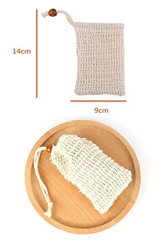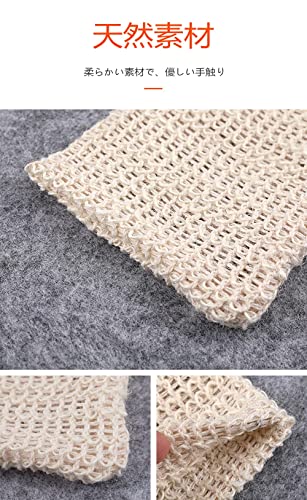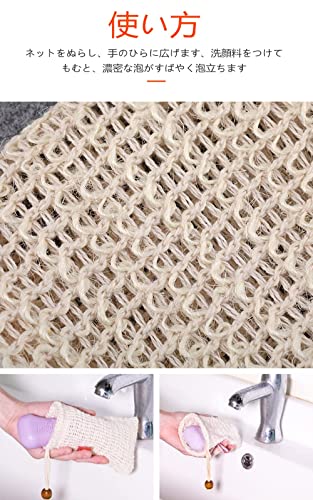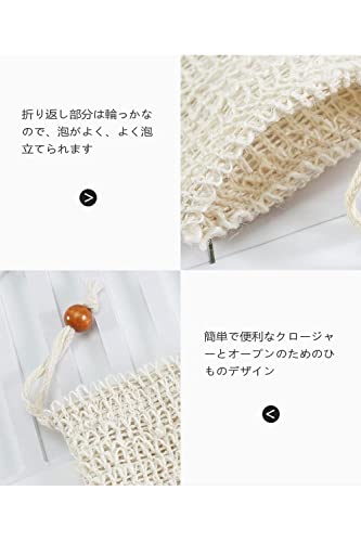 YFFSFDC 泡立てネット 石鹸ネット 石鹸袋 巾着袋 石けんセーバーバッグ ポーチ メッシュ 洗顔 洗顔料用 お風呂泡立て 天然素材 綿麻 ナチュラル 壁掛け用リング付き 3個セット