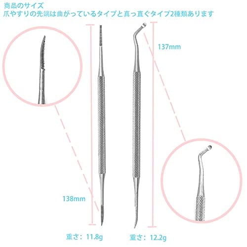爪垢取り 巻き爪 やすり 巻き爪専用 ゾンデ ステンレス製 防錆に強くて 滑り止めて消毒が簡単です 甘皮カッター 巻き爪/厚い爪 /足 爪ケア ネイルケア カーブ ストレート ダブルヘッド 爪やすり 2点セット