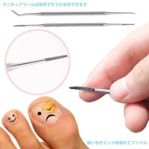 高品質のステンレススチールから作られています、防錆に強くて、滑り止めて、消毒が簡単です。爪やすり、爪垢取り、足の爪のお手入れに便利です。