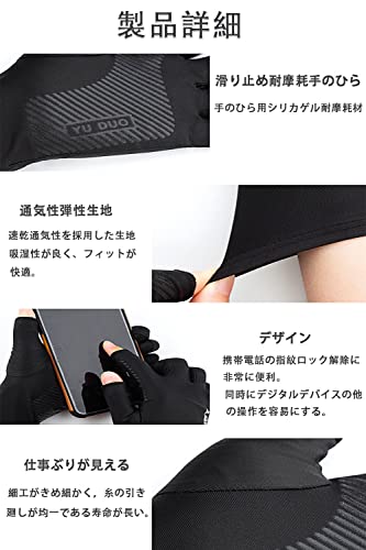 YFFSFDC フィッシング グローブ 釣り 手袋 2本指出し UVカット 日焼け防止 通気性 男女兼用 滑り止め アウトドア スポーツ (ブラック)