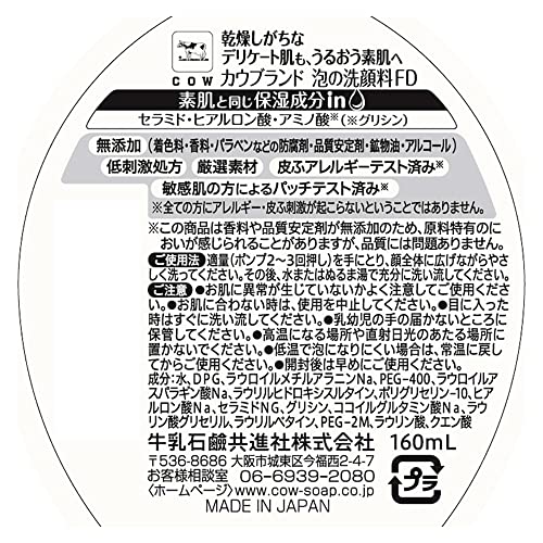 カウブランド 無添加 泡の 洗顔料 ポンプ付 160mL