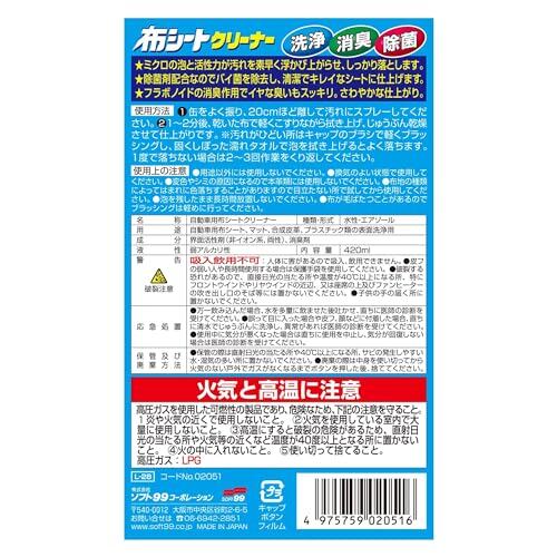 内容量:420ml 商品サイズ(幅×奥行×高さ):70×70×220×mm 素材に優しい専用ブラシ付き 布シートにしみついた悪臭を汚れもろともスッキリ落とし、長期間清潔なシートコンディションを保つ クリーナー効果に加え、天然フラボノイドによる強力な消臭・除菌効果を発揮