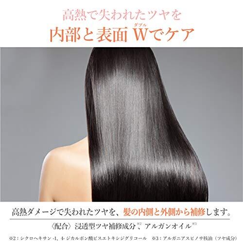 180度以上の高熱ダメージをブロックしながら浸透型ツヤ補修成分とアルガンオイルで高熱で失われるツヤを内部と表面Wでケア