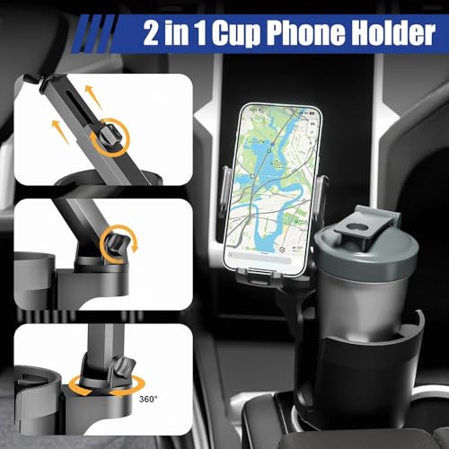 スマホ ドリンクホルダー 車 調整可能 車用 携帯電話 カップスタンド 車載 2in1デザイン カップホルダー用 スマホ用【最新進化伸縮アーム】360度 回転 ワンタッチ取り外し 多機種に対応 車載 スマートフォン カーマウント