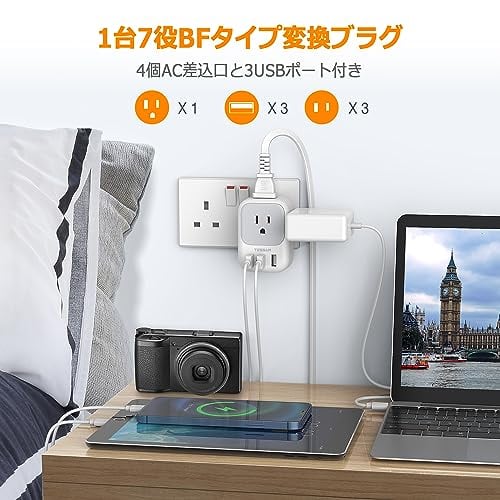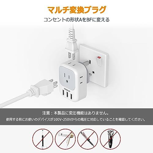 TESSAN 変換プラグ 海外旅行用 BFタイプ 変換器 電源変換アダプター コンセント変換 香港/シンガポール/マレーシア/マカオ/イギリスなどの地域に対応