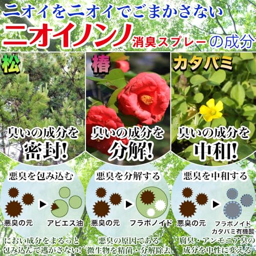 人畜無害の純植物性消臭液 生ゴミ、トイレ等の臭いに カーテン、衣類、靴の臭いに 犬、猫、亀、ハムスター等のペット類に 松、椿、かたばみより抽出したエキスが気になる臭いを消す