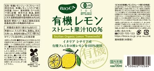 内容量:700ml パッケージ重量: 1.16 kg 商品サイズ(高さx奥行x幅):27cm×8cm×8cm 原材料:有機レモン 甘味と酸味のバランスがよく、後味まで残る香り高さが特徴です。