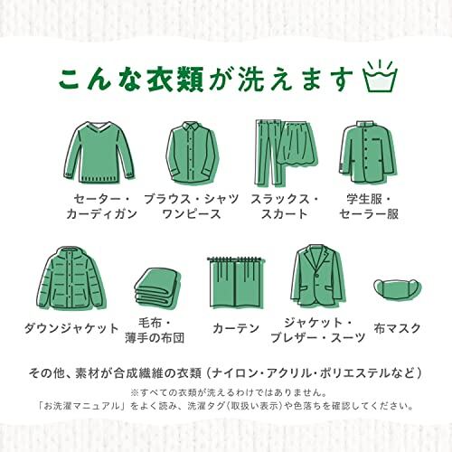 たった3分のつけ込み洗いで、大切な衣類をご家庭で簡単に洗うことができます。柔軟仕上剤配合。