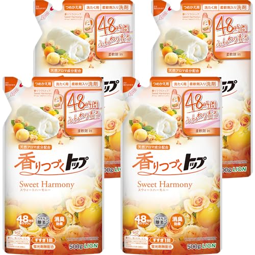 洗う時から、着る時まで心地よい香りが長続き。天然アロマ配合でふんわり香る。 500g×4個 原材料: 界面活性剤(17% ポリオキシエチレンアルキルエーテル、直鎖アルキルベンゼンスルホン酸)、安定化剤 ブラント名: トップ メーカー名: ライオン