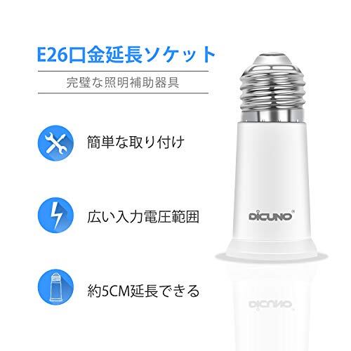 DiCUNO E26→E26 口金延長アダプター E26 延長ソケット 約5CM延長する 難燃性材料PBT 2個セット