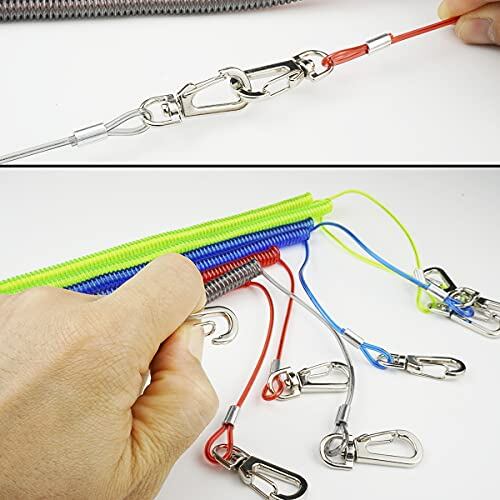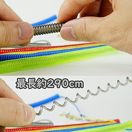 スパイラルコード:ステンレスワイヤー入りで安心強度、ナスカン付きで取り付け簡単