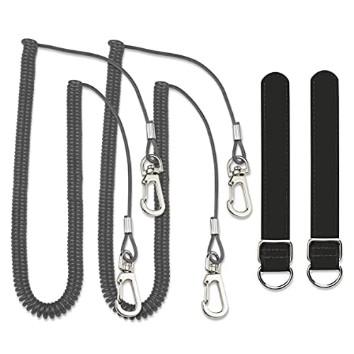 釣り竿 尻手ベルト ロープ付き スパイラルコード ワイヤー入り 290cm セット (ブラック)