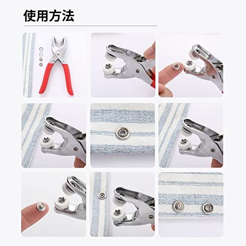 YFFSFDC スナップ ボタン 100個入り プラスナップ ペンチ付き 打ち具 衣服 ビニール袋 テーブル クロスなどに適しています プライヤーで スナップ留め具 DIY 操作が簡単 収納ケース付き