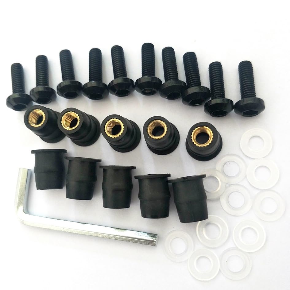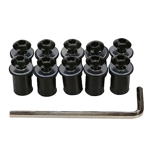 LOYELEY スクリーンボルト 10個セット M5 5mm ボルト ウェルナット 風防ネジ ウインドスクリーン カウルやスクリーンの固定 ワッシャー・六角レンチ付き カヤック オートバイ バイク用 (ブラック)