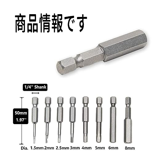六角レンチビット 8本セット インパクトドライバービット 精密ドライバー 六角? 6.35mm 磁気吸着 電動ドライバー ビット 1.5mmー8mm ドリル ビット工具 50mm長六角ビット