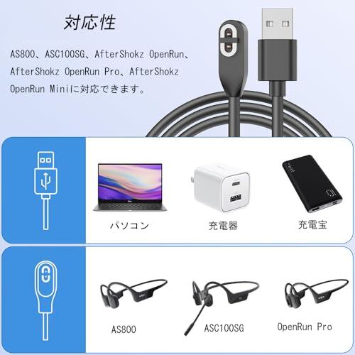 DFsucces Shokz用充電ケーブル 磁気充電器 USB充電ケーブル Aeropex AS800 OpenComm 互換 骨伝導イヤホン用アクセサリー 1m ブラック