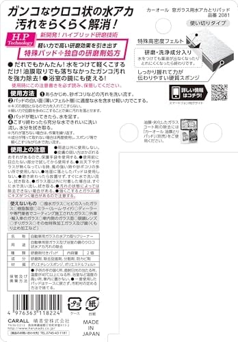 窓にこびりついたウロコ状の水アカ汚れをらくらく解消 作業は簡単、水をつけてこするだけ 新開発ハイブリッド研磨技術(特殊パッド+独自の研磨剤処方)により 軽い力で高い研磨効果を引き出します 浴室の鏡についた白いウロコ状の汚れも落とせます 容量:2個