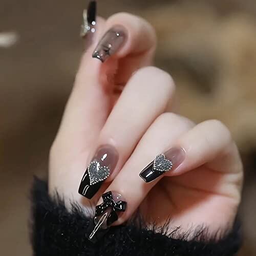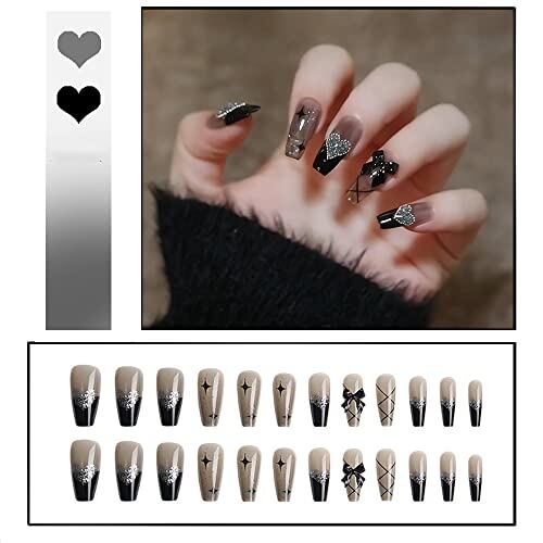 YINKE ネイルチップ ロング 24枚入 黒 成人式 独特な??台形のスタイル 黒い暗夜の星空 女性おしゃれな 上級 ネイルラップ