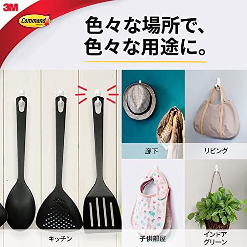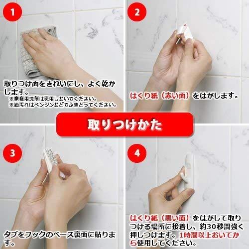 本体サイズ(約):[フック]幅23×奥30×高76mm 内容:フック 2個、貼りつけ用タブ 6枚 気軽に貼れてキレイにはがせる両面粘着テープです。 壁紙や凹凸面には使用できません。 貼った面に傷をつけずはがせます。