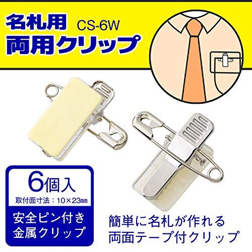 【仕様】名札用両用クリップ 【入数】6個入 【貼り付け部】両面テープ式 【特長】名刺やカードが名札に早変わり 【ご注意】こちらはクリップ部のみとなります。