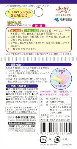<b>原産国 :</b> 日本 <b>原材料 :</b> アルミナ、アボガドオイル、非イオン系界面活性剤、ラノリン、ホホバワックス、顔料 <b>内容量 :</b> 4枚 <b>商品サイズ (幅X奥行X高さ) :</b> 70mm×2mm×135mm <b>質量 :</b> 8 <b>材質 :</b> アクリル、ポリエステル