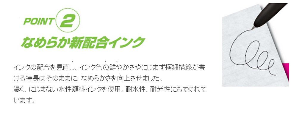 【特徴2】顔料インクは耐水性・耐光性に優れているため、水ににじまず、描線が色褪せにくく、いつまでも鮮やかな描線を残す。