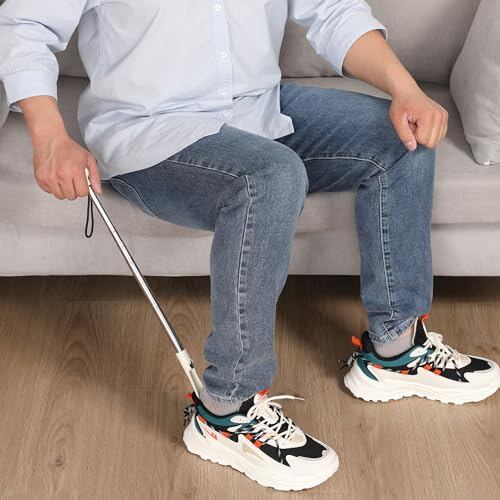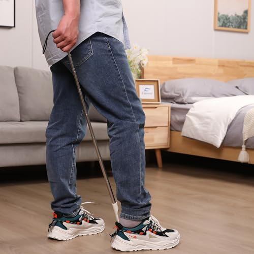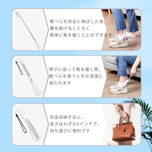 【全年齢層に適した伸縮式靴べら】靴べらの長さは18cmから92cmまで調節可能。座ったまま、または立ったままでも使用でき、腰を曲げることなく靴を履くことができます。お年寄り、妊婦、子供、男性、女性など、家族全員に適したデザインです。