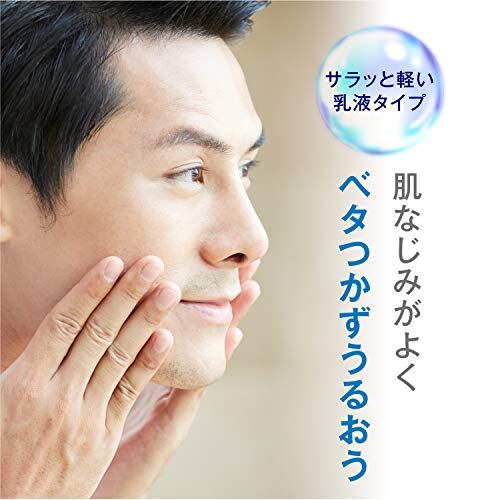 スーッと馴染んでベタつかない乳液。洗顔やヒゲそり後のお肌を整え、しっとりさせてカサつきを防ぎます。