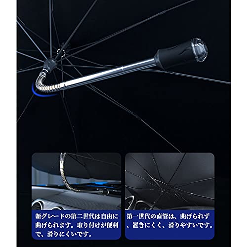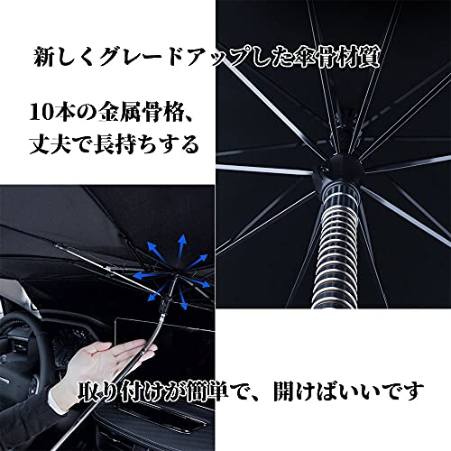【2023年最新改良版の傘型サンシェード】ダッシュボードの高低により、傘の柄を折り畳めて調整できます。360°回転可能,配置位置がより柔軟で愛車を保護します,センターコンソールを傷から守るため,金属の傘柄がダッシュボードに触れないように。そして傘の柄の位置には破窓機能が加わり、より安心です。傘の骨の材質がグレードアップされ、より長く持ちます。