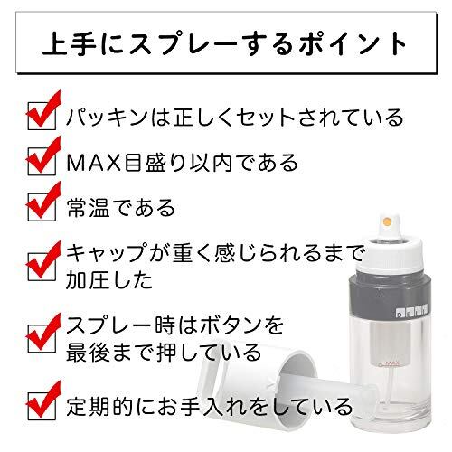 油を霧状にすることで少ない油をムラなく塗ることができ、手を汚しない。