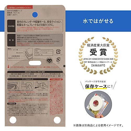 ニトムズ ミズトレック はがせる両面テープ 壁紙用簡単 のり残りしない 水できれいにはがせる 室内幅15mm×長さ1.5m 1巻入 T3971