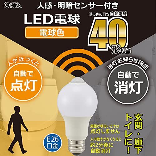 オーム(OHM) 電機 LED電球 E26 40形相当 人感明暗センサー付 電球色 人感センサー 40ワット相当 自動点灯 玄関 トイレ 廊下 階段 LDA5L-G R51 06-4463