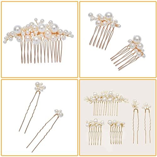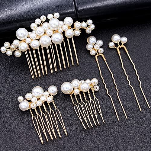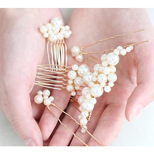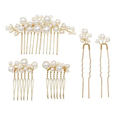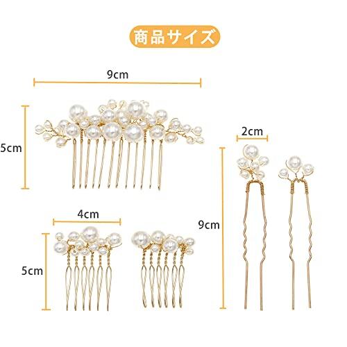 DFsucces パール 髪飾り ヘッドドレス Uピン ヘアピン かんざし 和装 撮影 結婚式 ウェディング パーティー 花嫁などの髪飾り用 5個セット (ゴールド)