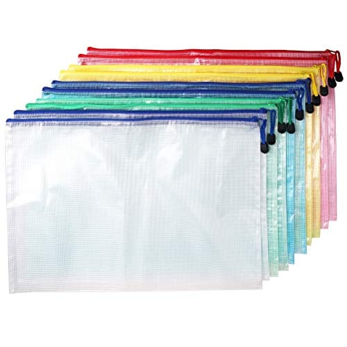 jlon 10枚 ジッパー式ファイル袋、A3サイズメッシュファイルケース PVC防水タイプ フォルダー 大容量 書類収納ケース 出張旅行整理必需品