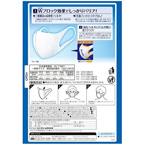 超立体マスク 風邪・花粉用 不織布マスク 日本製 ふつうサイズ 30枚入 〔PM2.5対応 日本製〕 (99% ウィルス飛沫カットフィルタ) ユニチャーム 立体マスク