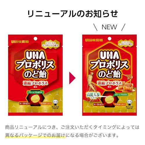 原材料名:砂糖、水飴、はちみつ(ニュージーランド産マヌカハニー)、プロポリスエキス、エリスリトール、植物油脂、ローヤルゼリー、ハーブエキス/酸味料、香料、乳化剤