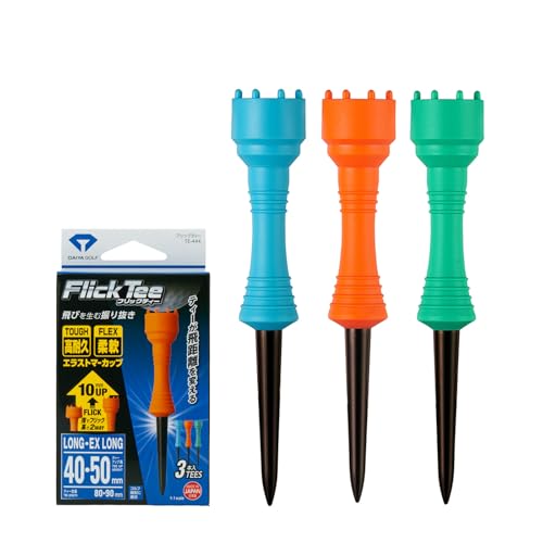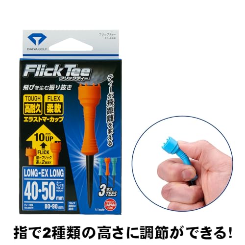 ダイヤゴルフ(DAIYA GOLF) ゴルフティー フリックティー 2段階高さ調節 ティーアップ高40・50mm 高耐久で柔軟性の高いエラストマーカップ 初心者 ゴルフ規則適合 日本製 3本入 TE-444