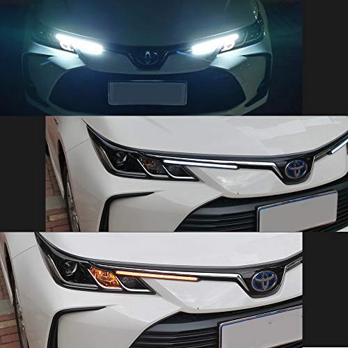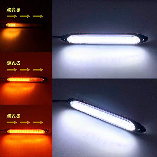 XINFOK LED テープライト 粒がみえない シリコン 簡単取付 2色発光 流れる シーケンシャル ウィンカー デイライト ツインカラー 2本 セット 純正仕様 15.5cm DC 12V 車用 (15.5cm) (ブラック, 15.5cm)