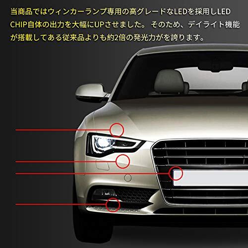 【高輝度&高拡散】ポジション時:ホワイト、ウインカー時:アンバー;こだわりの設計で光の拡散性UP。スペシャル素材を利用して、スペシャルのつくり方で発光方式が粒の見た目をなくしました。優しく綺麗に光られます