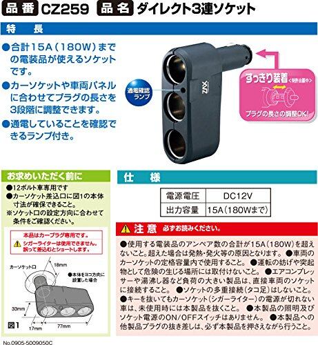 カーメイト 車用 ソケット ダイレクト3連 ブラック CZ259
