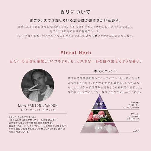 ナチュラルでみずみずしいフローラルの香り。毎日使うものだからこそ、心から華やぐ香りを大切にしてきたメルサボン。南フランスで活躍する香りのスペシャリストが手掛けた、【香り満足度95%】のこだわりの香りです。