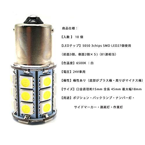 HooMoo 24V LED 車用 ホワイト S25シングル/G18 (1156 BA15s) トラック デコトラ ダンプ バス 大型車用 バルブ ウインカー マーカー球 ターンライト ブレーキランプ サイドフラッシャーランプ 汎用 10個セット