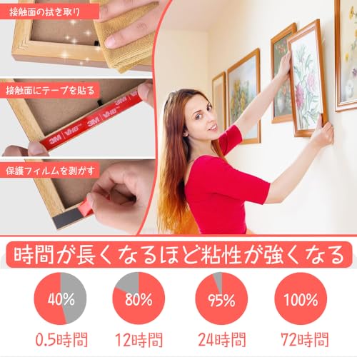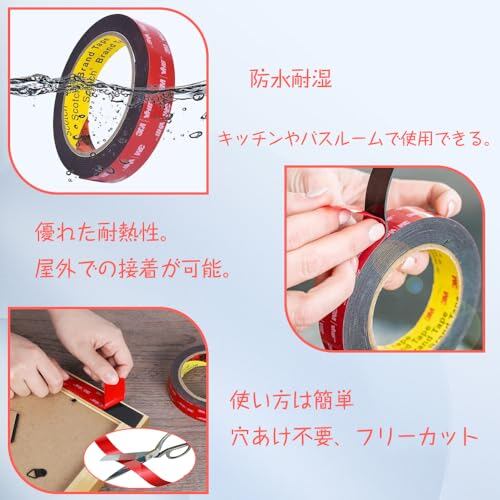 多用途:両面テープは強力に接着し、きれいにはがせます。両面粘着剤は壁などを傷つけません。 屋内、屋外、金属、木材、ガラス、タイルなど様々な場所に使用できます。