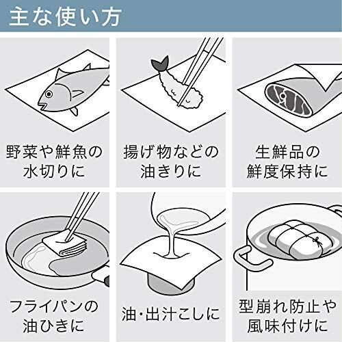 二層構造Hシートにより、水・油・ドリップをたっぷり吸収する不繊維タイプのクッキングペーパー。天然パルプ使用。